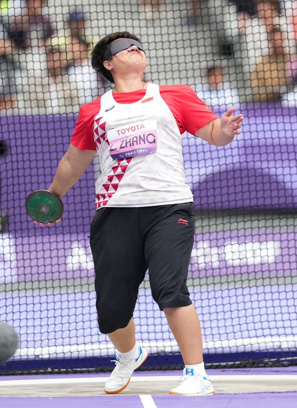 随后的女子铁饼F11级决赛中,中国选手张亮敏同样以个人赛季最佳成绩夺金。她第二掷的成绩达到39米08,以绝对优势获得金牌。