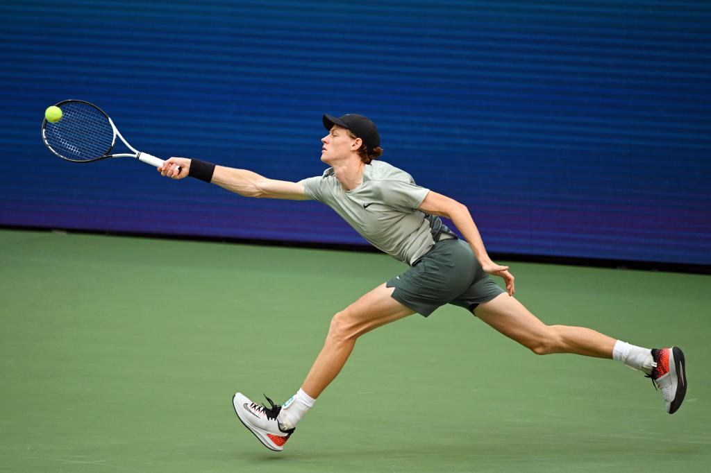 9月8日,辛纳在比赛中回球。新华社记者 李睿 摄