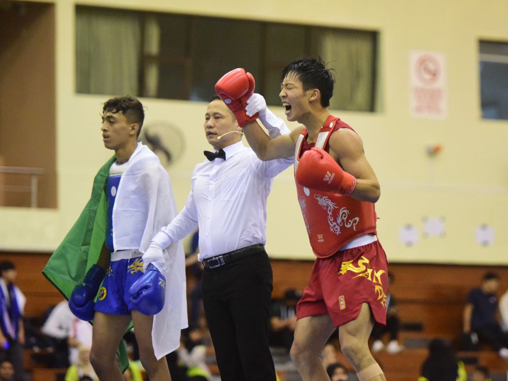 9月29日,在文莱举行的第九届世界青少年武术锦标赛散打男子60公斤级决赛中,中国选手郭俊彪战胜阿尔及利亚选手哈姆扎,获得冠军。新华社记者 李萌 摄