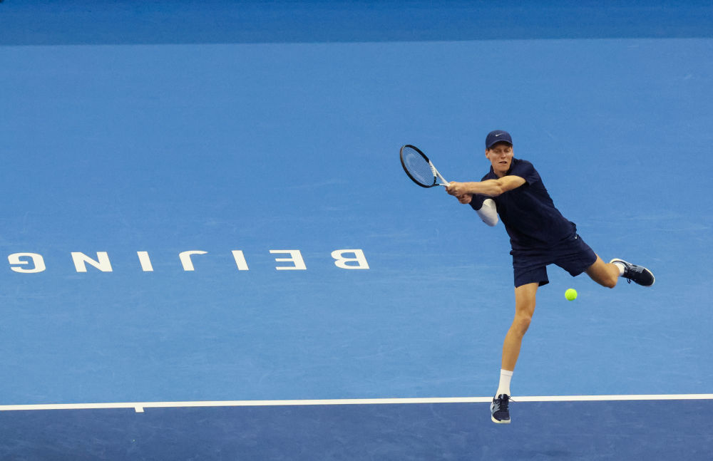 9月25日,辛纳在比赛中回球。新华社发(马子涵摄)