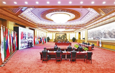 9月17日,国家主席习近平在北京以视频方式出席上海合作组织成员国元首理事会第二十一次会议并发表重要讲话。新华社记者 申 宏摄