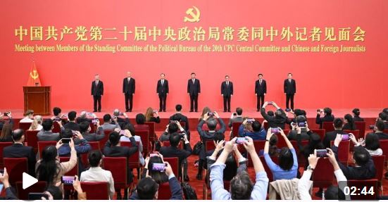 10月23日,刚刚在党的二十届一中全会上当选的新一届中共中央政治局常委,在人民大会堂同采访中共二十大的中外记者亲切见面。