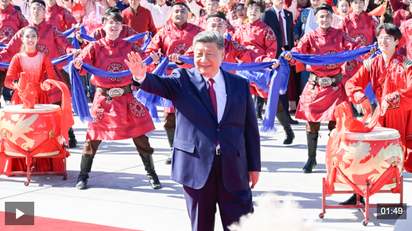 25日中午,习近平总书记在乌鲁木齐出席新疆维吾尔自治区成立70周年庆祝活动后,乘专机返回北京。在乌鲁木齐市区和机场,新疆各族群众热情欢送总书记。