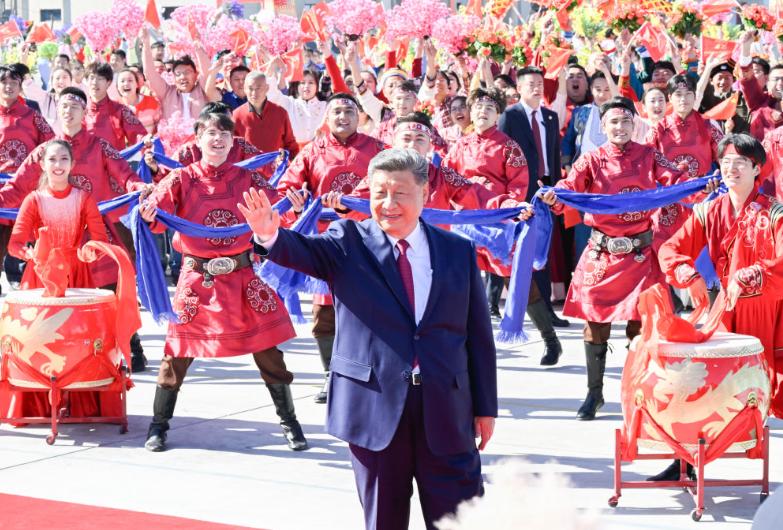 习近平作为中共中央总书记、国家主席、中央军委主席率中央代表团出席新疆维吾尔自治区成立庆祝活动,在党和国家历史上是第一次,令新疆各族干部群众倍感温暖和振奋。