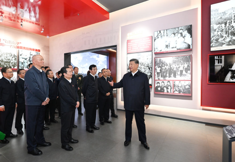 24日上午,习近平总书记来到乌鲁木齐文化中心展览馆,参观新疆维吾尔自治区成立70周年主题成就展。自治区成立时的历史视频,十月拖拉机厂生产的第一批拖拉机,打赢脱贫攻坚战的新旧对比照片……总书记认真听取讲解,不时驻足察看。
