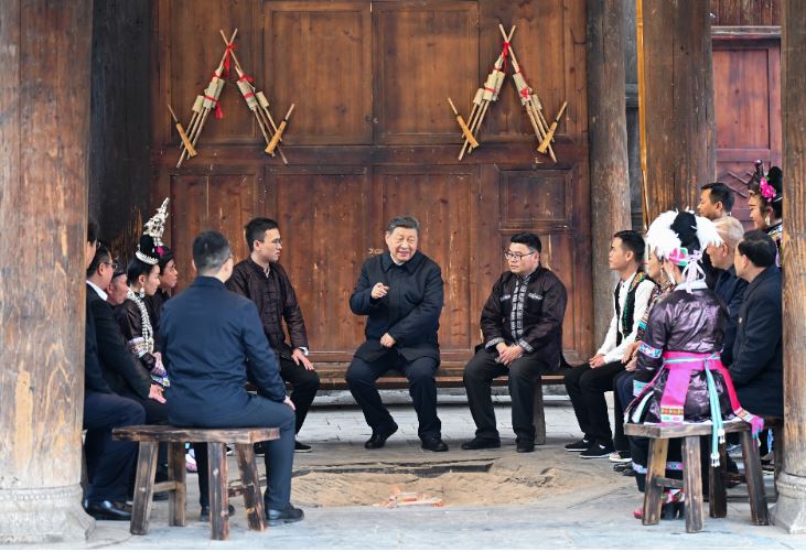 2025年3月17日下午,习近平总书记在贵州黔东南州黎平县肇兴侗寨考察时,在信团鼓楼同村干部和村民代表围坐在火塘边,共话乡村全面振兴。