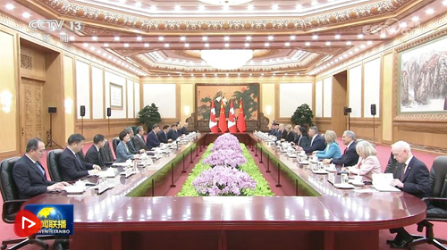 1月16日上午,国家主席习近平在北京人民大会堂会见来华进行正式访问的加拿大总理卡尼。