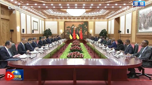 4月21日下午,国家主席习近平在北京人民大会堂同来华进行国事访问的莫桑比克总统查波举行会谈。两国元首一致同意将双边关系提升至新时代中莫命运共同体。