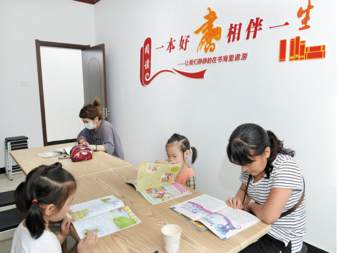 我市在创建全国文明城市工作中,城区办事处综合文化站标准化规范化工作得到进一步提升。图为社区群众正在新建路办事处党群服务中心阅览室进行亲子阅读。本报记者 宫爱文 摄