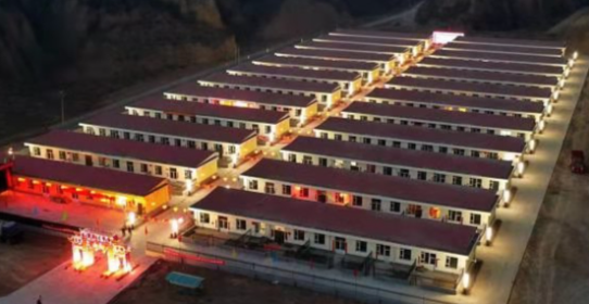 2月15日下午14时,记者前往该小区,眼前的景象让人耳目一新。24排整齐划一的院落,室内外窗明几净,家家户户挂着喜庆的大红灯笼,铁艺护栏十分精致,宽敞的街道挂满了五颜六色的条幅,写着“感谢党的好政策”“易地搬迁暖民心”“喜迎幸福年”等感恩和欢庆春节的标语。