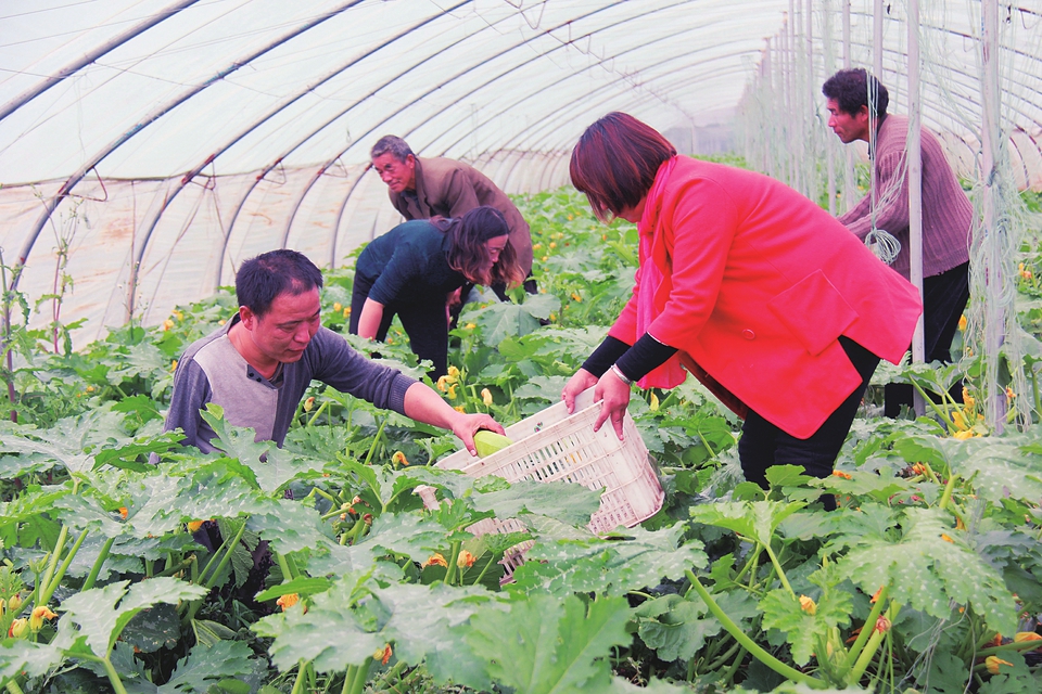 游客正在蔬菜大棚里采摘西葫芦。本报实习记者刘迎春摄