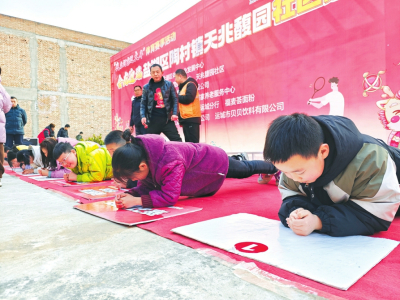盐湖区陶村镇天兆馥园社区儿童正在进行平板支撑比赛。本报记者周明飞摄