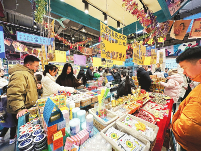 图②2月11日,太原钟楼街,市民正在挑选购买年货。