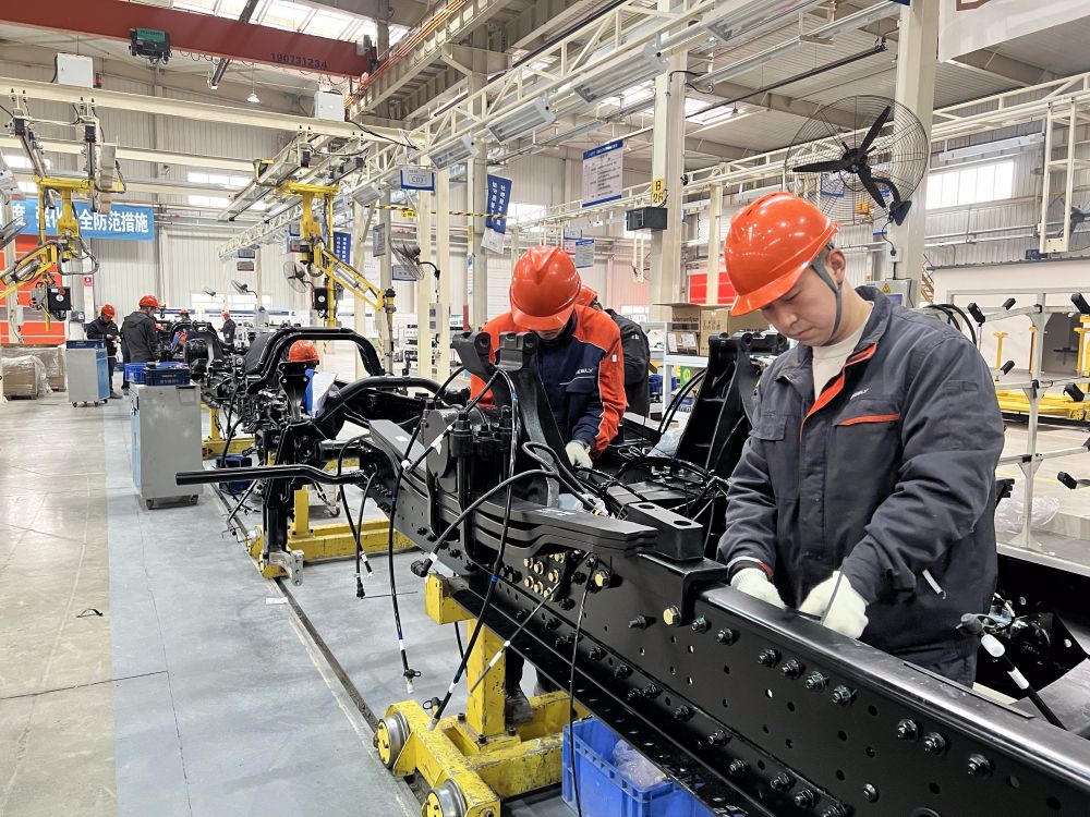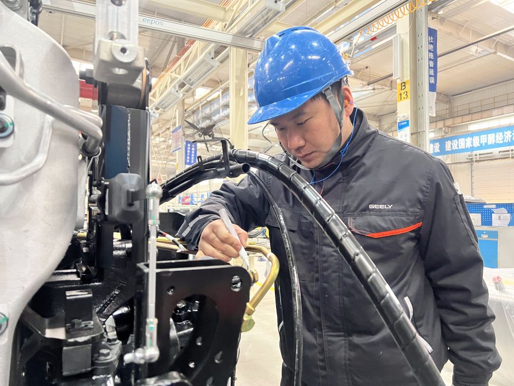 今年32岁的白鹏伟是车间的检验员,他会细心检验发动机和驾驶舱230多颗螺丝的扭力值是否达标。这项工作很考验工人的“绣花功夫”,既要精准又要高效,之前每天最多能检验8台车。“今年订单增加很多,大家干劲十足。”白鹏伟说,自己今年也会刻苦提升专业技能,练就与新工作量相适应的过硬本领,目标是每天15台车。