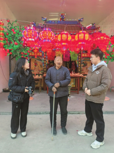 吕梁记者站记者要佳(左)、秦嘉良(右)在柳林县穆村镇沙曲村采访国家级非物质文化遗产代表性项目——盘子会。