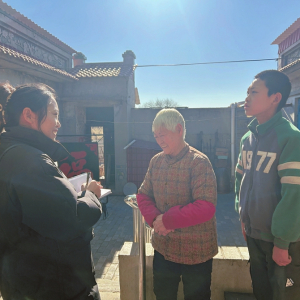 阳泉记者站记者霍雪茹在平定县谷头村村民吴维桑家中采访。