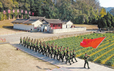 武警福建总队龙岩支队组织官兵在古田会议会址前重温初心。