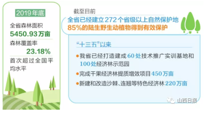 从2006年开始,我省每年都要召开全省国土绿化现场会,每一次现场会都是一整套精品工程。从晋城市的美丽乡村建设模式、运城市的生态经济林业建设模式、临汾市的山垣沟川综合治理模式、长治市的山水林田湖草沙系统治理模式,到阳泉市的矿区生态修复模式、晋中市的生态经济统筹推进、吕梁市的大规模生态修复模式、太原市的环城生态圈建设模式,再到忻州市的黄河流域劣质地类造林治理模式、朔州市的沙区林草融合模式、大同市的沙区生态公园建设模式,逐步形成了山西科技兴林集合地。在精品工程的推动下,《2017年全国生态气象公报》显示,2000-2017年山西植被改善最快。