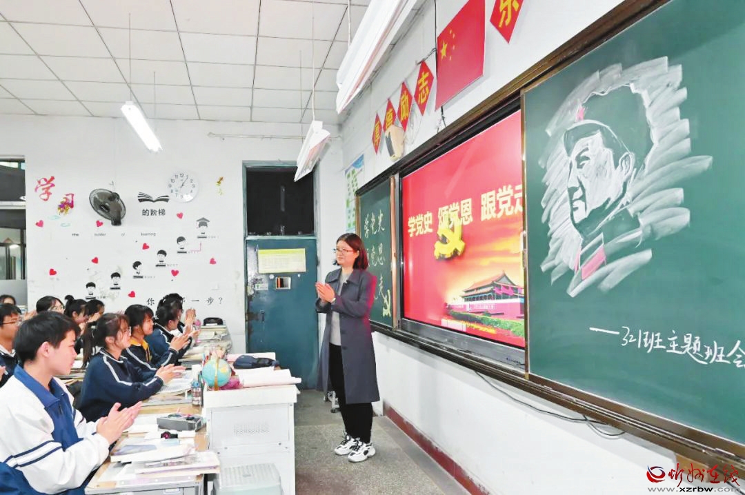 近日,忻州实验中学高中部和初中部举行了“学党史、颂党恩、跟党走”主题班会,通过观看多媒体课件、视频深入学习党史国史。 (冯伟伦 摄)