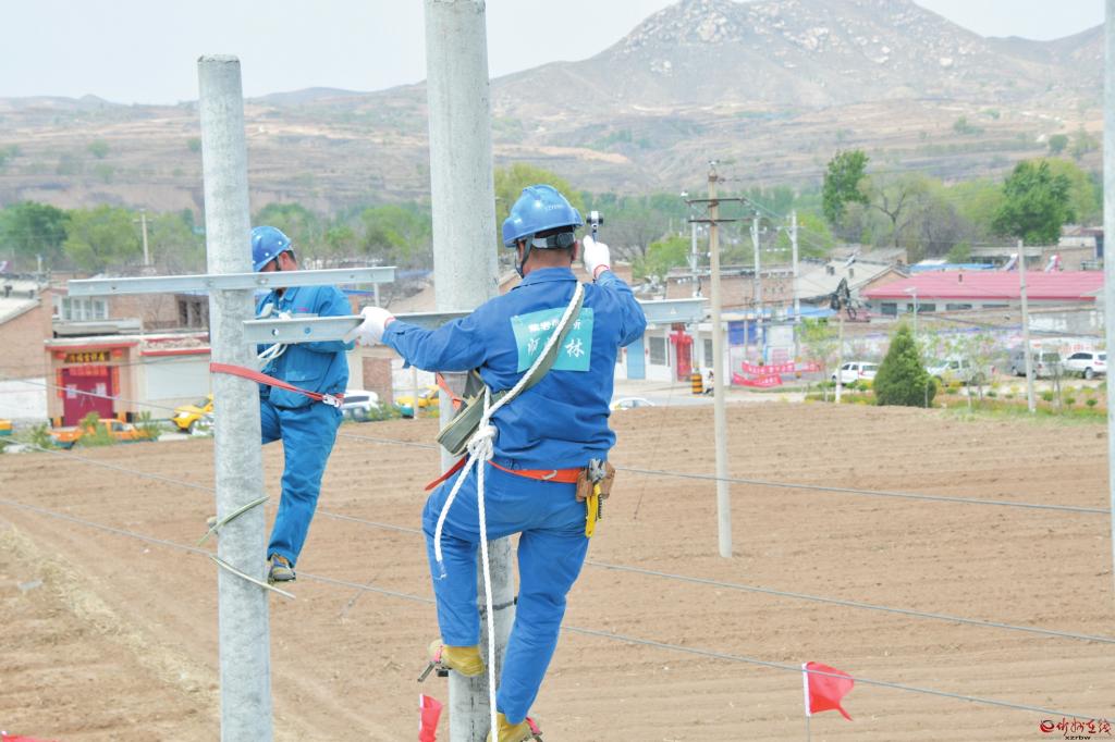 近日,国网忻府区供电公司开展“学党史、强技能、践使命、优服务”技能大赛。来自公司所属供电所、供电服务站、电建分公司的21支代表队的63名选手分别参加了登杆作业、装表接线等技能比武,在全公司上下形成了“学党史、强技能、践使命、优服务”的良好氛围,使公司更多的技术标兵、业务尖子脱颖而出。图为登杆作业比赛。(赵晨善 摄)