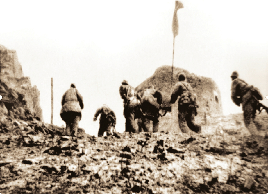 1949年4月20日,人民解放军发起总攻太原的战斗。图为红旗插上太原城头。(资料图片)