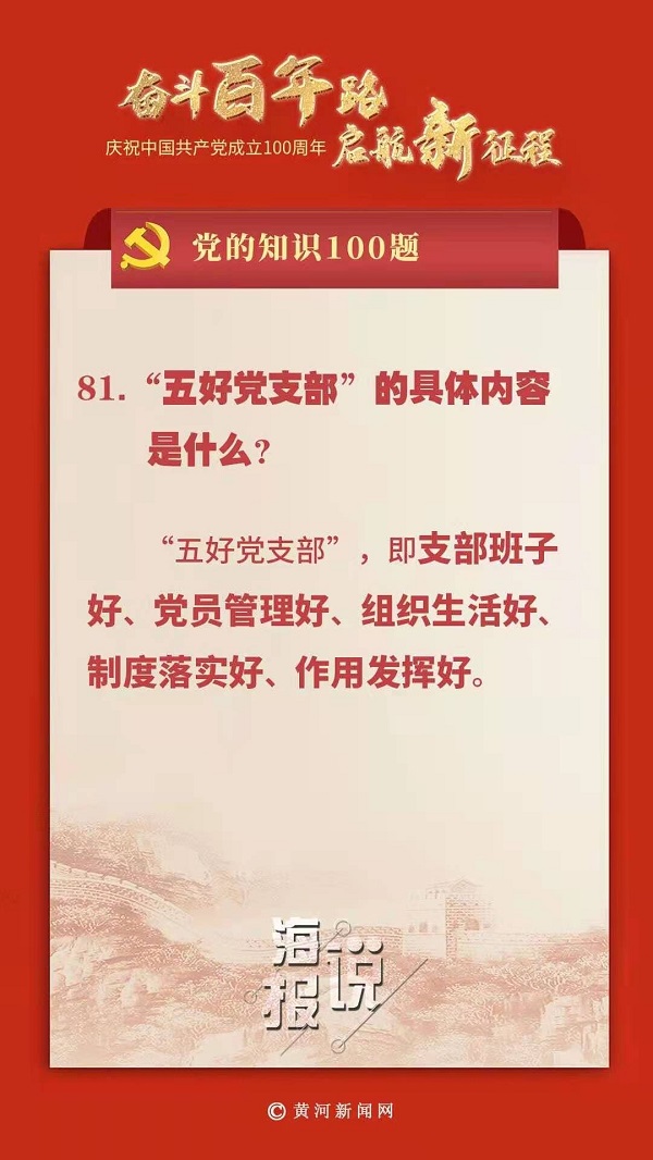 党的知识100题:“五好党支部”的具体内容是什么?