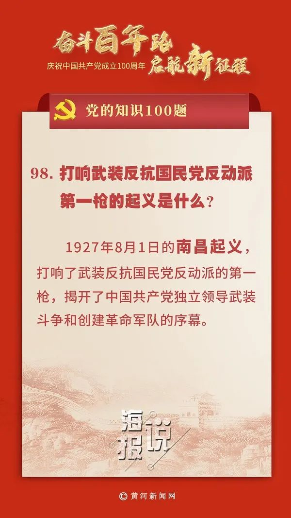 党的知识100题:打响武装反抗国民党反动派第一枪的起义是什么?