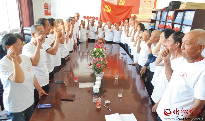 为了深入推进党史学习教育,进一步增强广大党员干部的党性修养,近日,五台县阳白乡上金山村党支部组织部分离退休“光荣在党50年”的老党员,举行了“学党史、知党情、感党恩、守初心”主题活动。他们在党旗前诵读红色经典,重温入党誓词,表达了全体党员不忘初心、牢记使命,为党的事业奋斗终身的决心,坚定了他们在巩固拓展脱贫攻坚成果与乡村振兴工作中发挥余热的意志。 王金龙 摄