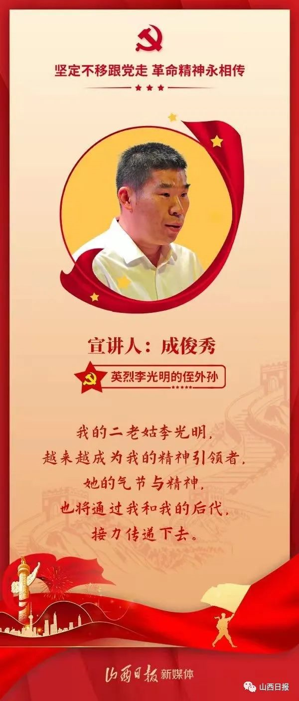 7月6日和7日,按照省委党史学习教育领导小组办公室安排,山西省英烈英模家属宣讲团先后走进大同市和朔州市,开展“坚定不移跟党走,革命精神永相传”主题宣讲报告会。在5位英烈英模家属的深情讲述中,重温那段可歌可泣的岁月,感悟那种永不磨灭的精神。