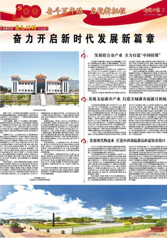 五台县矿产资源丰富,尤其是白云石资源储量达7亿多吨,为发展镁合金产业奠定了丰富的资源基础。早在2006年,五台县就成立了五台云海镁业有限公司,利用丰富的白云石资源大力发展镁合金产业。