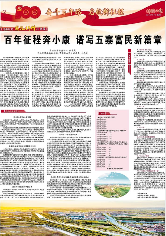 100年披荆斩棘、顽强奋战,100年波澜壮阔、沧桑巨变。百年来,五寨全县上下百折不挠、顽强拼搏,特别是党的十八大以来,以习近平新时代中国特色社会主义思想为指引,牢记嘱托、砥砺前行,推动全县各项事业取得历史性成就、发生历史性变革,整体上彻底摆脱了绝对贫困,全面建成小康社会取得决定性成就。