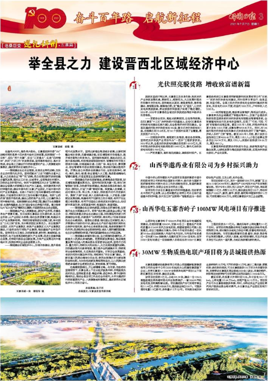 五寨县将积极探索光伏扶贫与农业、旅游等其他产业融合发展,让绿色发展与稳定脱贫同频共振,实现光伏扶贫长效化、产业化发展。(五寨县委宣传部供稿)