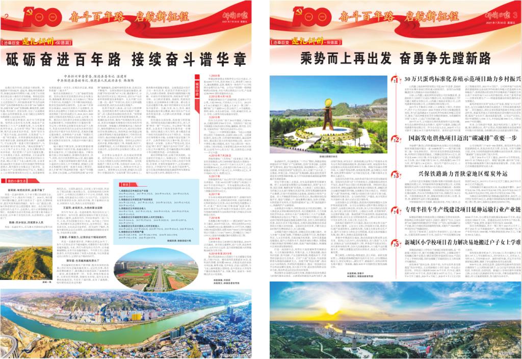 沧桑巨变百年间,启航奋斗新征程。伴随着新中国站起来、富起来、强起来的铿锵步伐,保德这座黄河岸畔的小城,实现了从贫困落后到全面小康的历史性跨越。特别是党的十八大以来,在习近平新时代中国特色社会主义思想指引下,我们按照省委“四为四高两同步”总体思路和要求以及市委“336”战略布局,创新实施“1245”发展战略,解放思想、抢抓机遇,笃定前行、攻坚克难,交出了全面建成小康社会的保德答卷,在奋力蹚出全面转型发展新路上迈出坚实步伐。