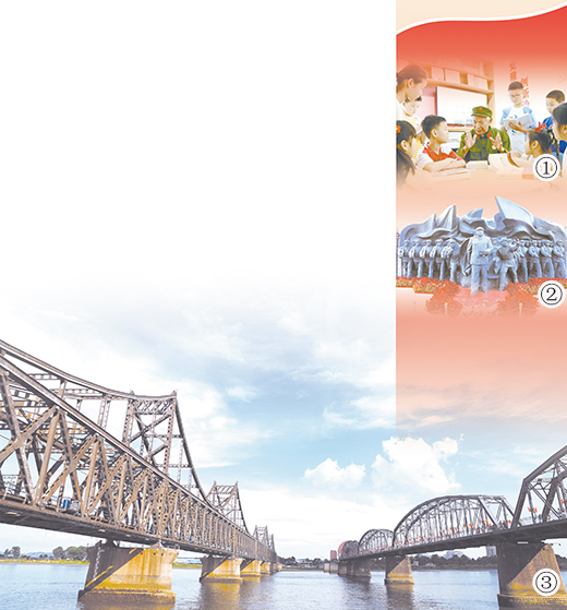 图③:鸭绿江上的中朝友谊桥(左)和鸭绿江断桥(右)。本报记者 陈尚文摄