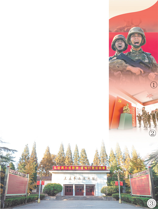 图①:王杰同志生前所在连队官兵誓师动员。图②:官兵在王杰老班长雕塑前宣誓。图③:王杰事迹陈列馆。白俊峰 凡春龙摄影报道