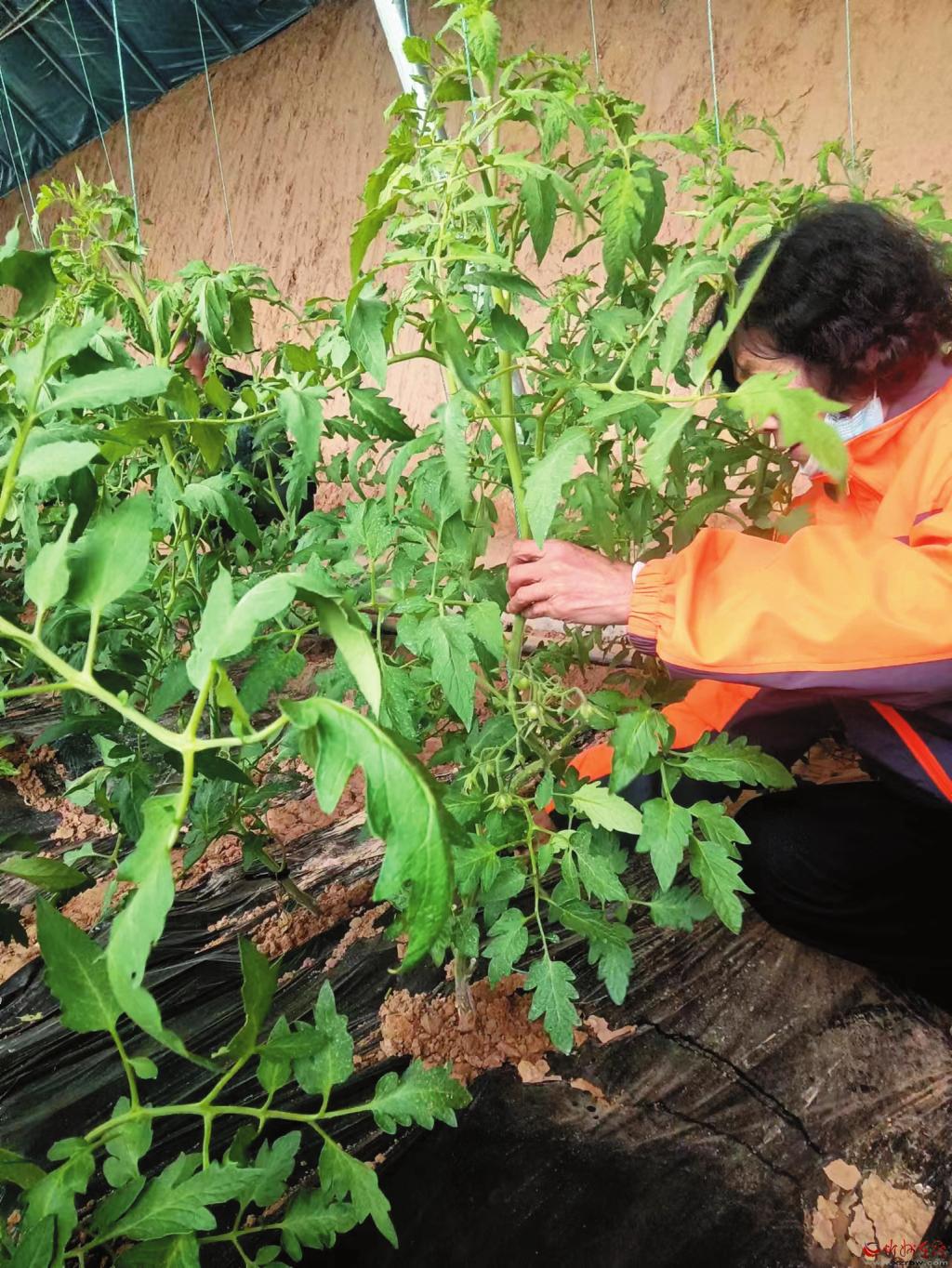 据了解,该大棚的管控依托于整个南作村周边大田环境监测设备对周边环境的数据采集,利用风速传感器、风向传感器、雨量传感器、太阳能土壤墒情数据采集,对土壤温湿度电导率、土壤PH值传感器中氮磷钾信息进行实时采集。并配备了虫情设备检测仪器,通过太阳能虫情测报灯、自动清虫太阳能杀虫灯、交流电杀虫灯对大棚和大田的虫情进行杀虫处理。通过智能数据采集将大棚中的空气温湿度、光照强度、二氧化碳、大气压等信息实时导入管理系统,根据其数值和农业作物的数据需求,实现自动卷帘调节温湿度。另外,根据农作物的营养需求,应用水肥一体化设备把营养液和预防药物进行了自动化的管控,确保农作物生长在健康的环境中,产出市民放心的蔬菜。图为技术人员在察看番茄结果状况。 (本报记者 李 涛摄)
