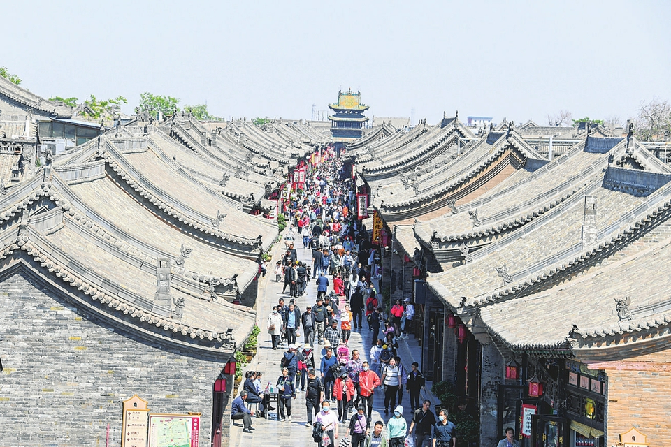 平遥古城厚重的历史文化吸引了四方宾朋。图为游人在平遥古城明清街游览。梁生仁摄