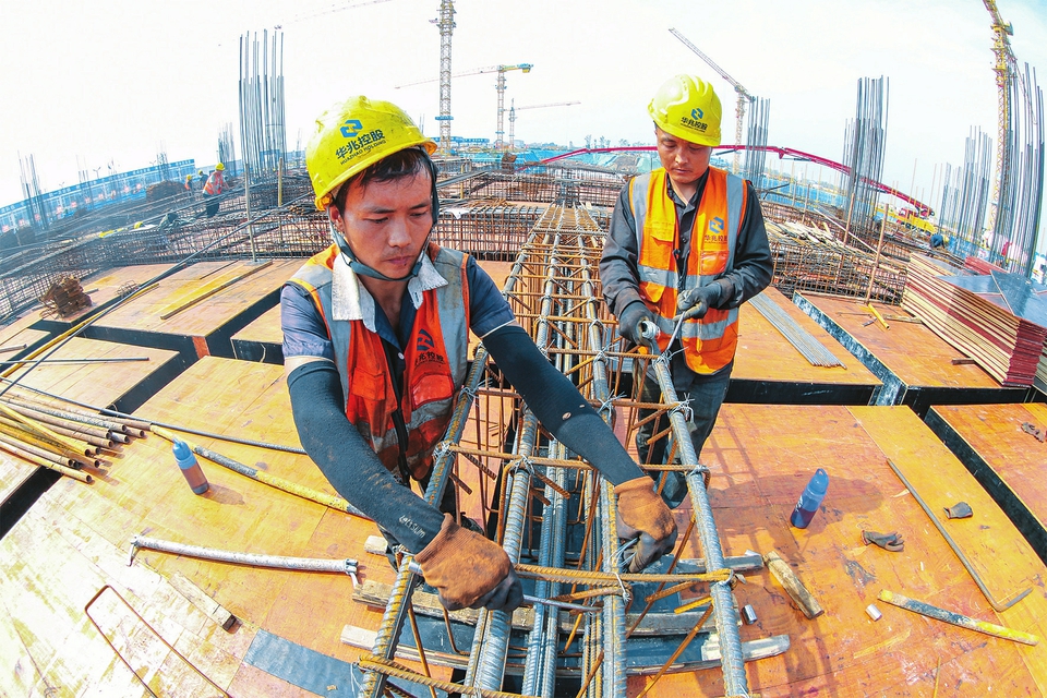 10月1日,建筑工人正在运城市会展中心项目建设工地做基础施工。国庆长假期间,承建总建筑面积82万平方米会展中心项目的运城市建工集团200余名建筑工人,坚守施工一线,严格按照时间表、路线图,采取人休机不停的昼夜轮班制施工,确保重点项目的有序推进。(姜桦摄)