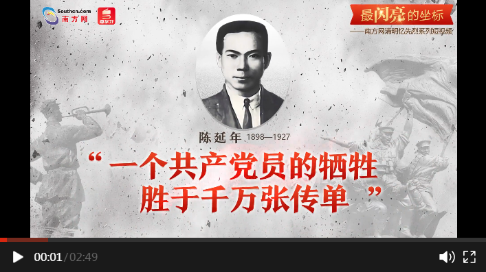 编者按:清明忆英烈,忠魂贯长空。4月1日至5日,南方网、粤学习客户端策划推出“最闪亮的坐标”系列短视频,通过挖掘广东革命烈士的光辉事迹,与大家一起缅怀英烈、学习英烈。今天推出第一篇《陈延年:一个共产党员的牺牲胜于千万张传单》。