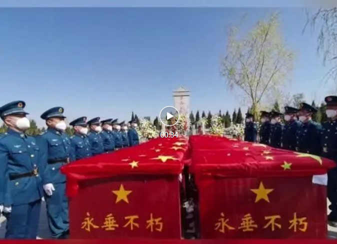 天空云低,苍柏低垂。一首《思念曲》,带来阵阵哀思,深沉低回,覆盖着国旗的16位烈士的棺椁由礼兵缓缓抬入陵园,庄重地摆放在纪念碑前。全体人员手握鲜花庄严肃立,祭奠忠魂,向为国捐躯的革命烈士表达深切哀思和无限敬仰之情。礼兵护送烈士灵柩到指定墓位安葬,参加仪式的全体人员向烈士献花,生长于这片土地的英雄,将在此长眠。