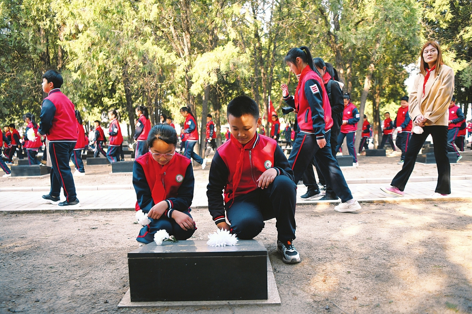 3月30日,省城迎泽区双塔南巷小学组织学校师生前往太原市双塔革命烈士陵园开展清明祭扫活动,深切缅怀革命先烈。本报记者王瑞瑞摄