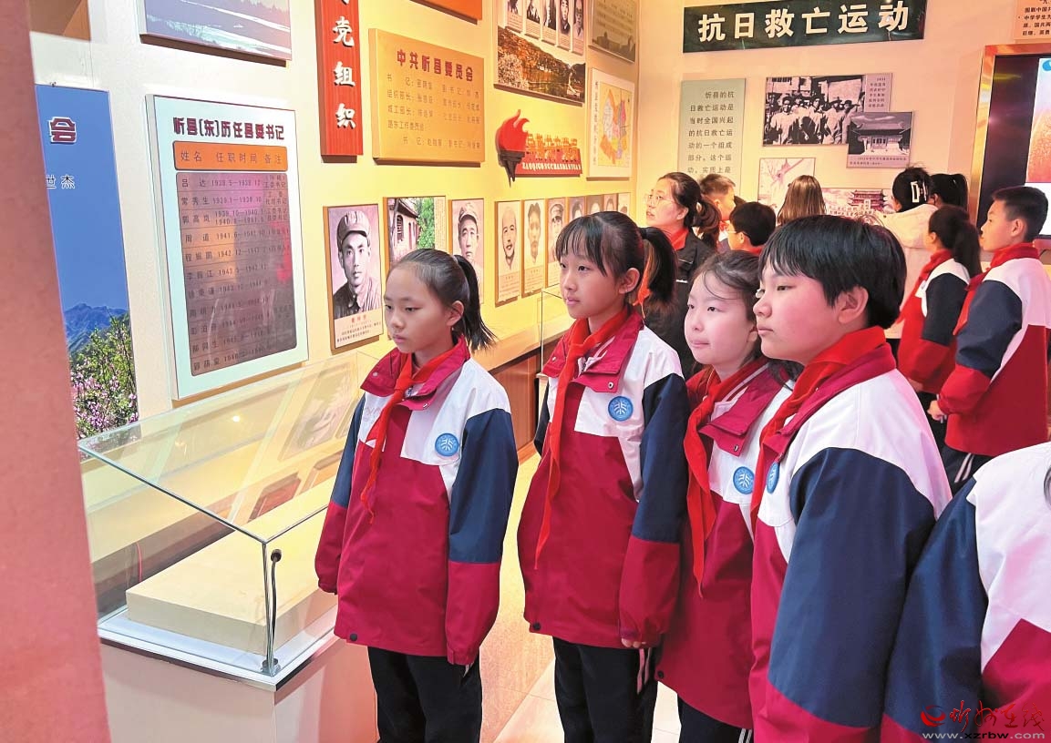 为弘扬英烈精神,赓续红色血脉,市长征小学、市北方小学组织学生于4月1日赴忻府区烈士陵园开展“清明节祭英烈”主题教育活动。本次活动不仅是一次生动的爱国主义教育实践,更是一次深刻的精神洗礼。左图为市长征小学学生在纪念碑前高唱国歌,右图为市北方小学学生参观革命斗争史纪念馆。(樊晶璟 张未平 王嘉华摄影报道)