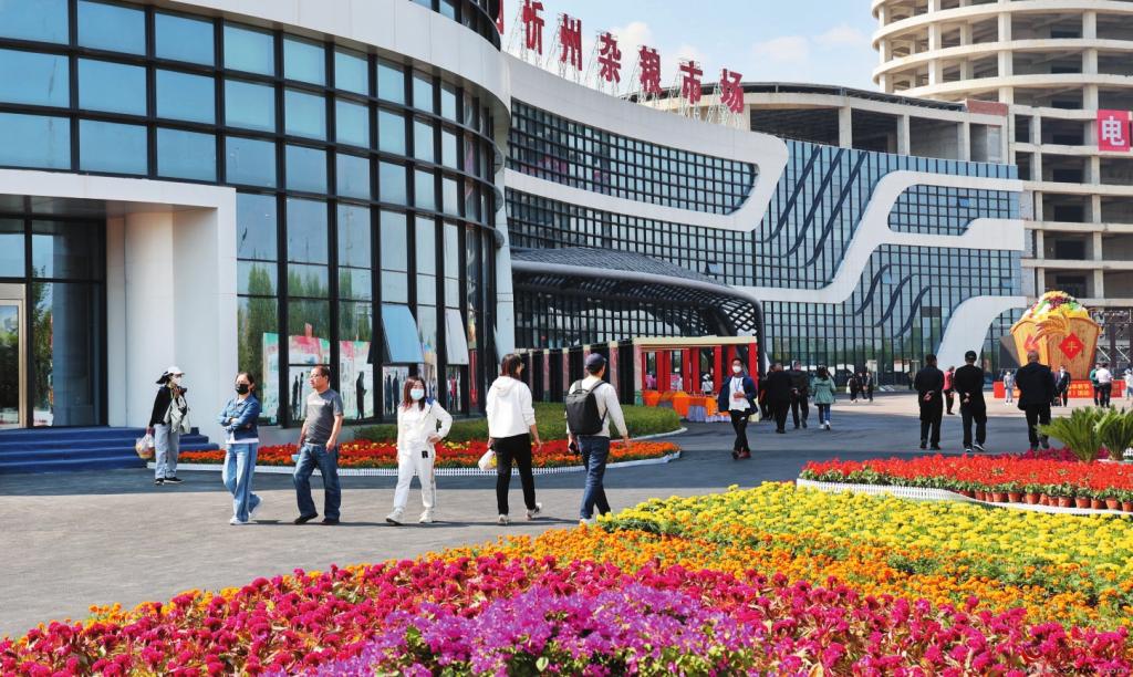 ②国家级山西忻州杂粮市场门口,人来人往,热闹非凡。