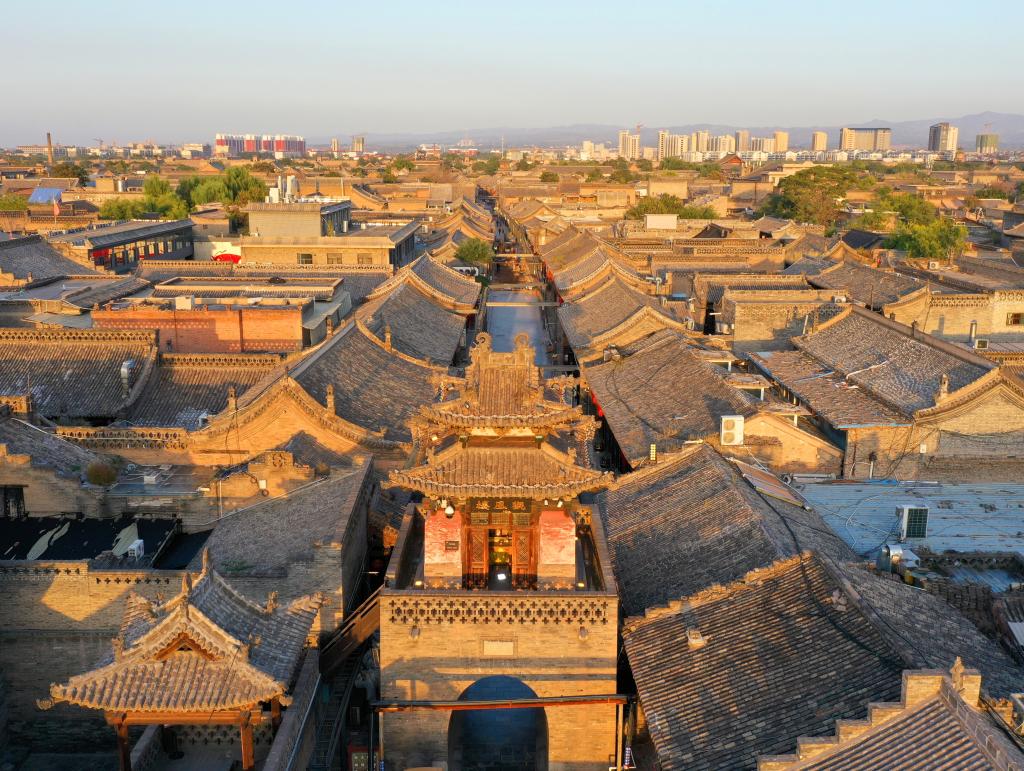 图为航拍平遥古城
