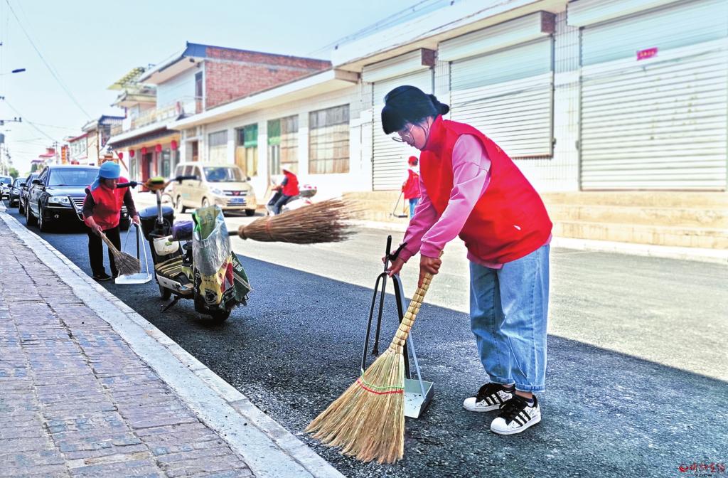6月5日,一抹抹流动的“志愿红”身影闪现在忻府区奇村镇南高村, 清扫道路垃圾、捡拾烟头,为居民营造一个干净、整洁、卫生的生活环境,志愿者忙碌的身影成为一道靓丽的风景线。 (宫清华摄)
