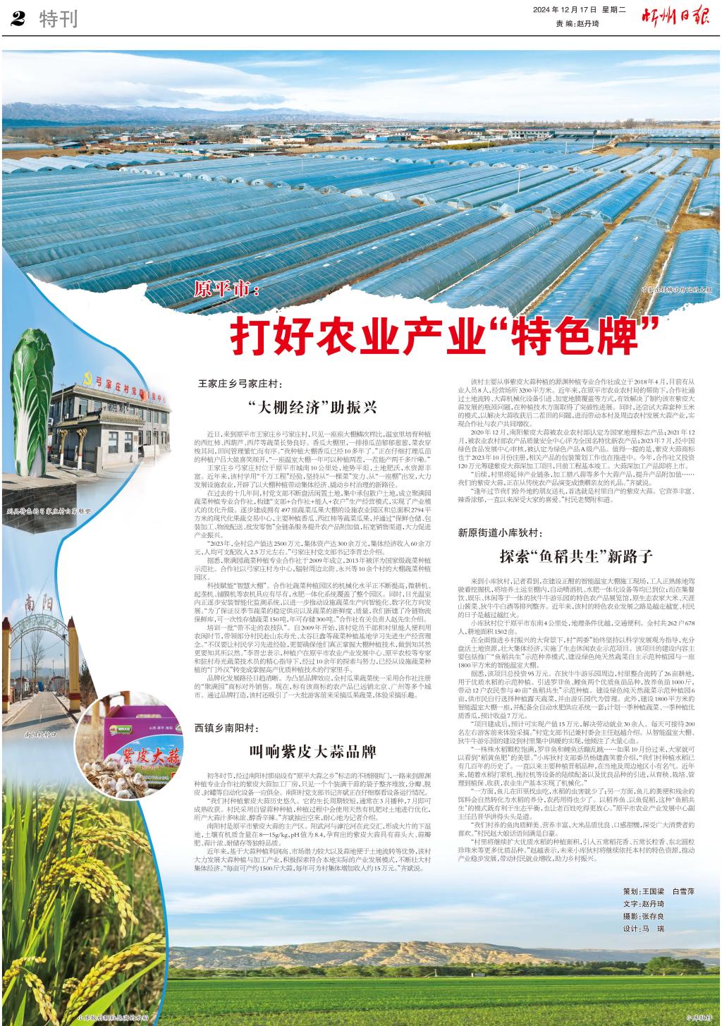 据悉,聚满园蔬菜种植专业合作社于2009年成立,2013年被评为国家级蔬菜种植示范社。合作社以弓家庄村为中心,辐射周边北街、永兴等10余个村的大棚蔬菜种植园区。