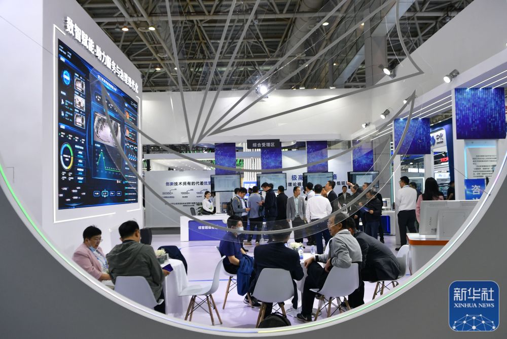 ↑4月26日在第六届数字中国建设成果展览会上拍摄的数智赋能·助力服务与治理现代化展区一景。