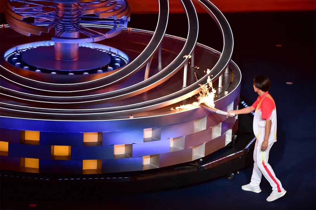 开幕式之夜,最为激动人心的就是点火时刻。在射击世界冠军张益梵、乡村干部王春、环卫工人孙秀兰、大国工匠官生花、公交司机冯冰依次传递过后,火炬来到了最后一棒火炬手、北京冬奥会冠军苏翊鸣的手中。主火炬塔点火装置以山西民俗“旺火”为设计依据,采用清洁能源“微火”点燃的方式。苏翊鸣手持火炬,在万众瞩目之下,以“微火”点“旺火”,历史、现在与未来,在这一刻融汇赓续。