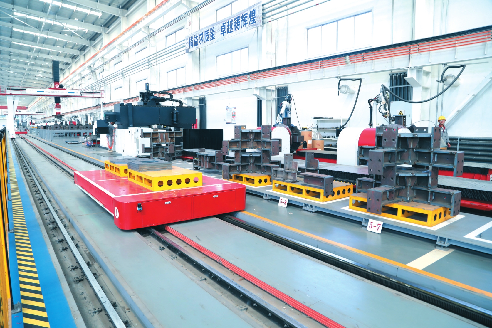比如智能下料分拣工作站,主要由激光切割机、视觉分拣机械手、三轴机械手RGV车(有轨制导车辆)等设备构成。激光切割机将钢材根据用途切割成大小不同的钢板后,视觉分拣机械手将其分门别类拣到相应托盘码垛,三轴机械手分别抓取放到RGV车上,转运至下一工作站。