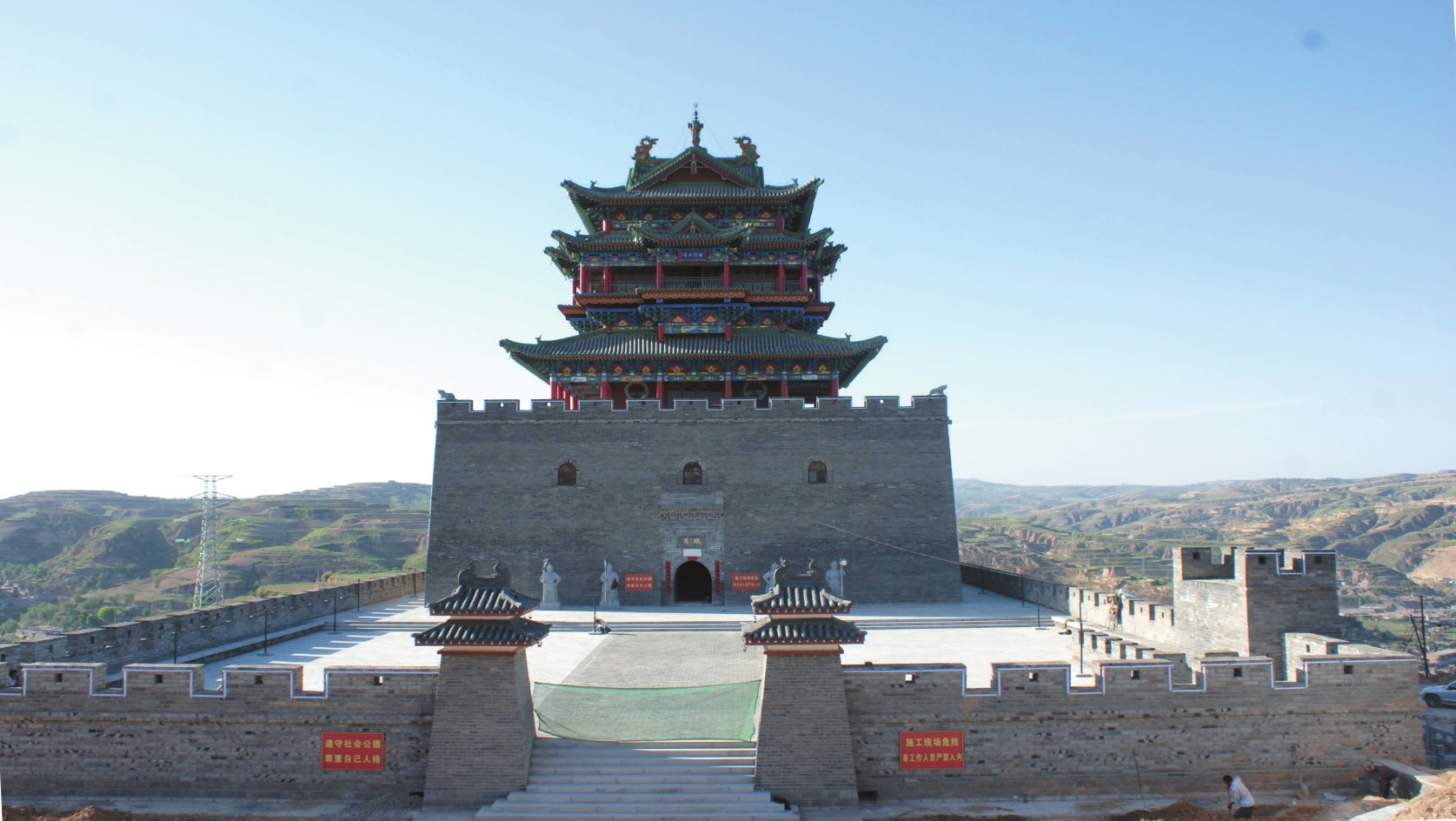 2011年至2012年,护城楼于原址复建为钢筋混凝土仿古建筑。新建城堡南北长70米、东西宽36米,堡东开一拱门,外包砖,内填素土并夯实,城墙上砌筑垛口。护城楼为方形,通高28.8米,其中墩台高12米、宽28米;楼身高19米、宽20米。
